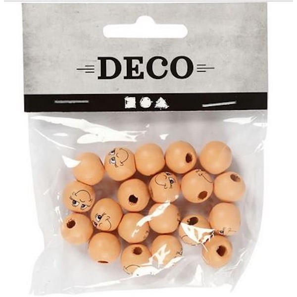 - Wooden beads with half-drilled hole - with printed face - skin-coloured