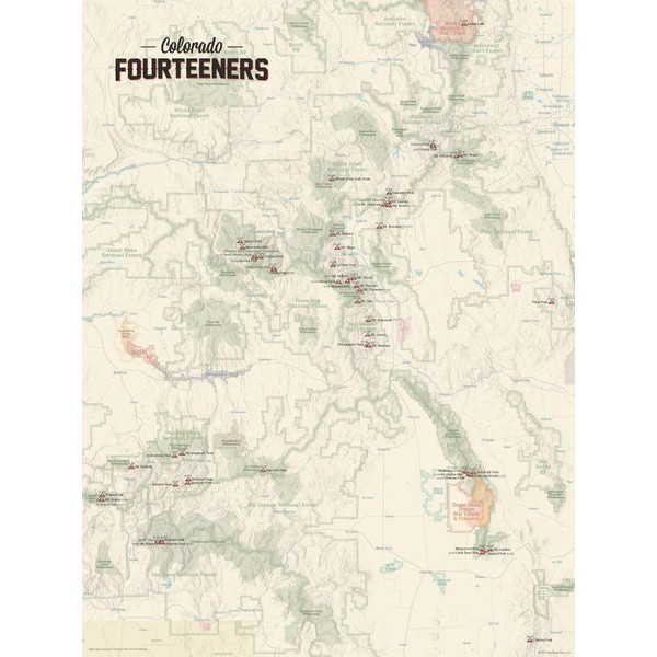 58 Colorado 14ers Map 18x24 Poster (Tan)