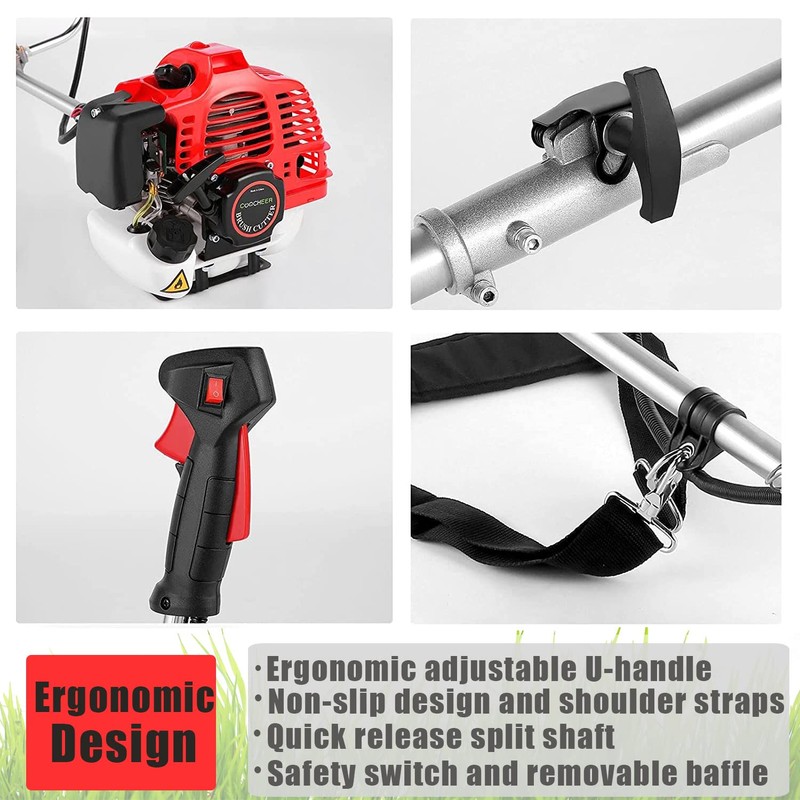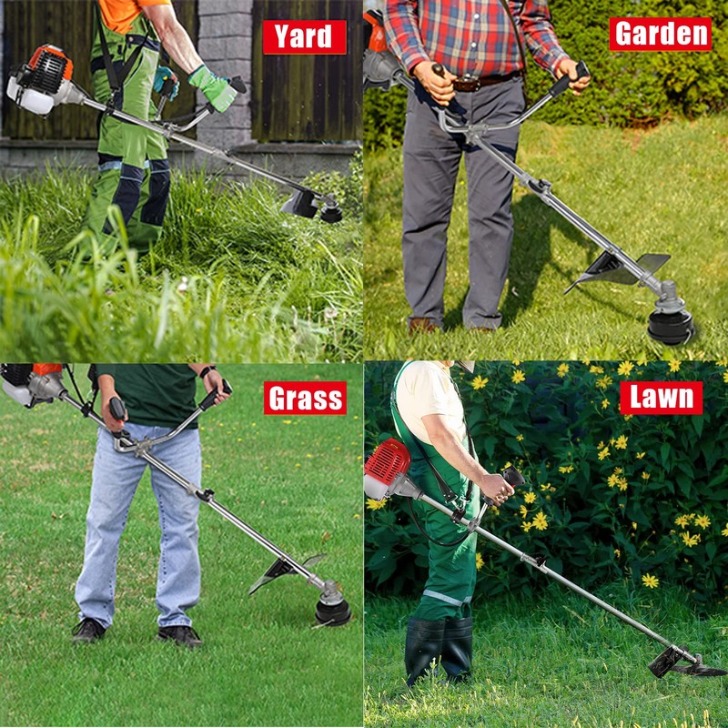 - [LOW GAS CONSUMPTION]-- The String Trimmer has less noise and less gas is emitted during use, reducing environmental pollution or harm to the human body. What’s more, the product qualify has 2-year warranty. Please feel free to contact us if you have any problems. We always strive to offer great consumer value with the absolute best price and quality entire line of products.