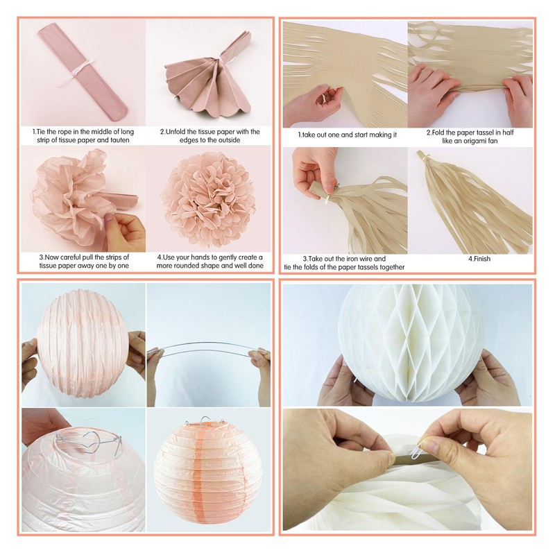 - Can be recycled:These paper lanterns, tissue paper pom pom flowers and paper fan banner balloons are super light and can be reused many times