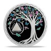 The front of this alcoholics anonymous gifts features a beautiful and strong tree of life with enamel butterflies in green, blue, pink and AA Circle/Triangle with AA Three Legacies motto: "Unity, Service, Recovery".
