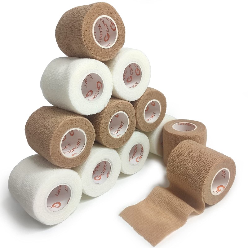 包帯、自己粘着性包帯 くっつく、指、手首、腕、足首弾性包帯、小動物用伸縮包帯5cm 6ロール肌の色6ロールホワイト