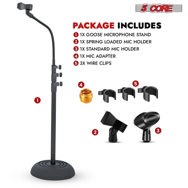5Core Mic Stand 2Pcs Floor Adjustable Round Base Metal Microphone Stands