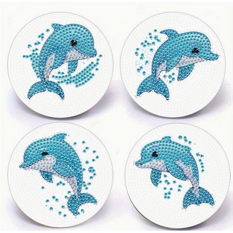 5D Diamond Art Dolphin Coasters, DIY Diamond Coaster Set for Beginners Arts and Crafts, 4 Pieces