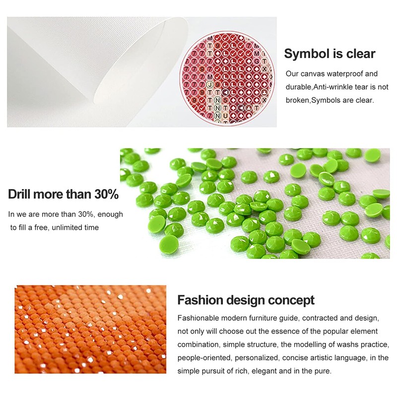 - ✅【Outstanding Material】- 5D diamond paintings uses high transparent printed canvas.which is thickened and waterproof and has even texture, with clear film cover to keep the picture sticky and then hold the diamonds in place, well protect the image. It's like cross stitch and paint by numbers, the symbols are clear and easy to read