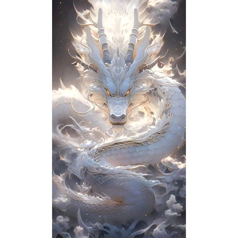 5D Dragon Diamond Painting, White Dragon Diamond Painting Set for Adults, DIY Diamond Painting Art Pictures, Full Drill Embroidery Set for Wall Decoration, Ideal as a Gift for Home (30 x 50 cm)