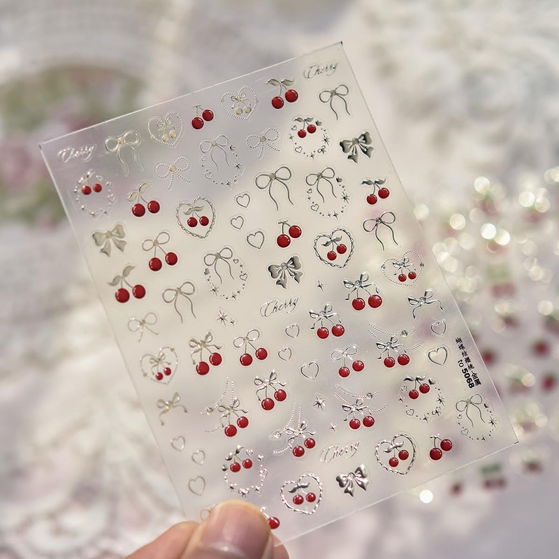 Quantity: 1 Sheets 5D Embossed Cute Cherry Nail Art Decals