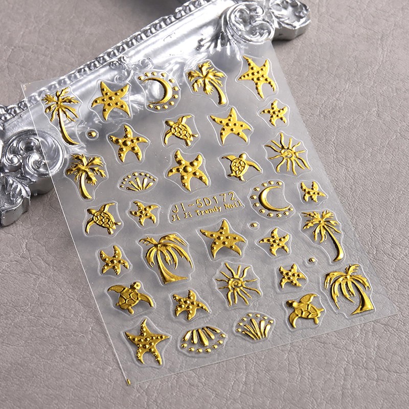 5D Embossed Gold Nail Art Stickers Summer Ocean Nail Sticker 2PCS Golden Flow...