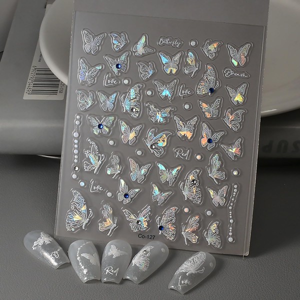 - Easy to use: This white butterfly nail design sticker is self-adhesive and does not require glue. Simply use tweezers to remove the nail sticker and stick it onto the nail. It can also be covered with topcoat to make the stickers more durable.