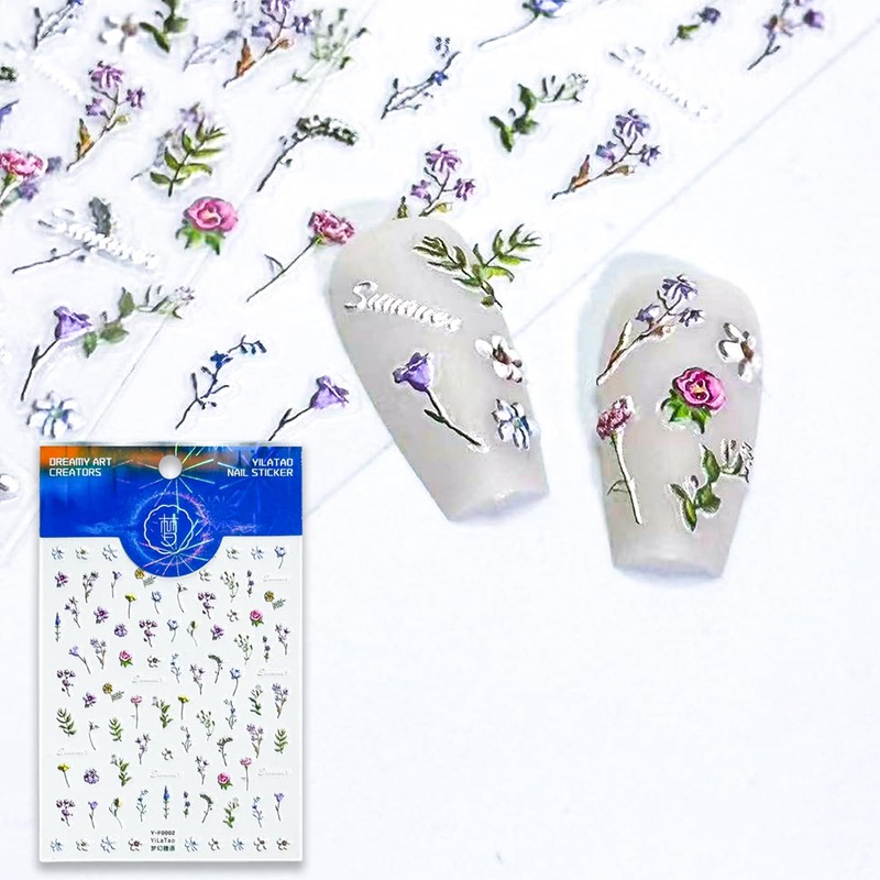 5D Embossed Nail Stickers for Nail Art - Self-Adhesive Floral Nail Decals, Summer Plant Nail Art Stickers for Manicure Decoration (YF-002)