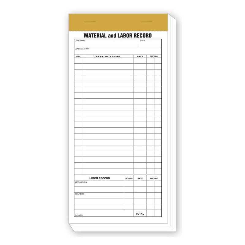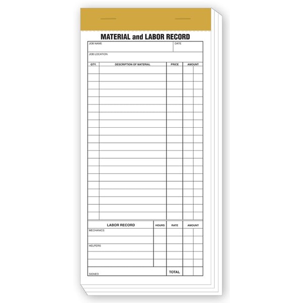 5Forms 230 Compact Material & Labor Records 4 1/4 x 8 1/4" Qty 1000