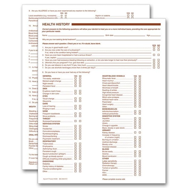 | Manufacturer: | Dental Health History Questionnaires 2 Sided No Hole Punch 7 3/4 x 10" QTY 250 |