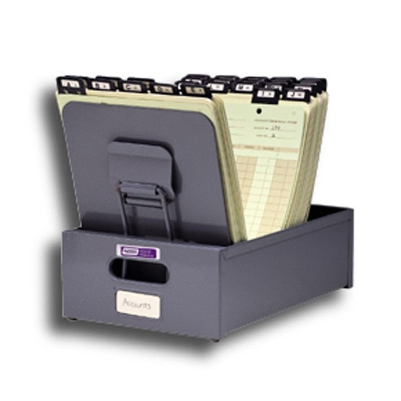 Keep records at your fingertips! Sturdy posting file is made of heavy-duty steel and can hold a 6" stack of forms (1000). Heavy-Duty Furniture Steel. For forms up to 6 1/2 x 9 1/4". Use with our #44 Index Guides! This is a posting file only, No dividers are included.