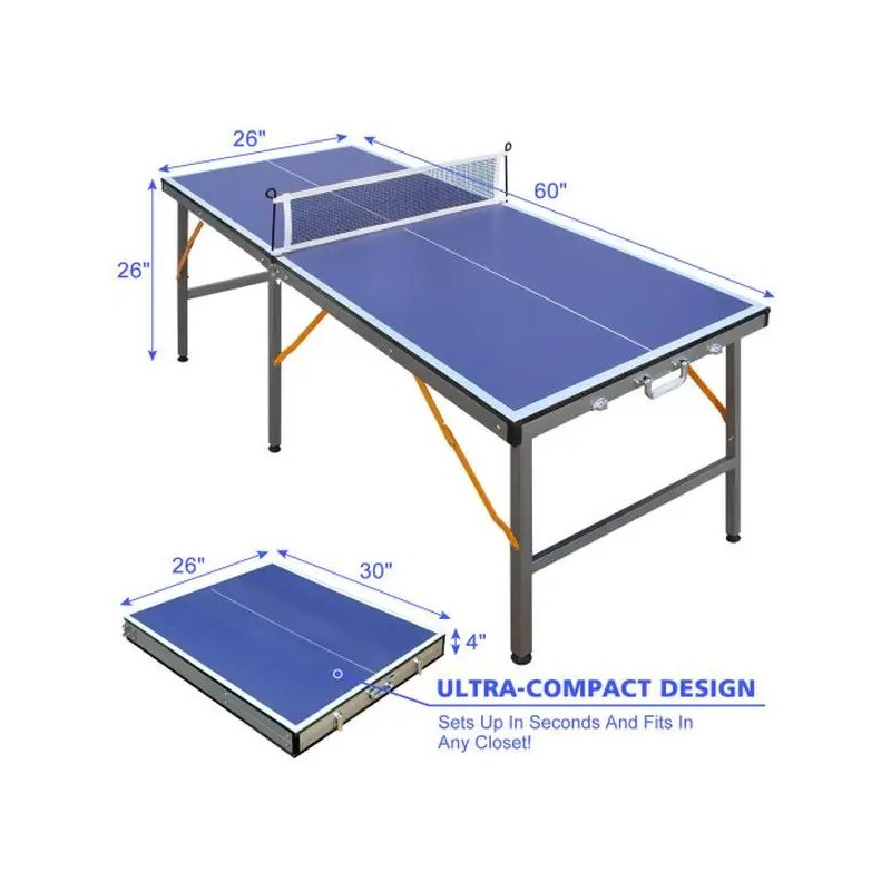5ft Mid-Size Table Tennis Table Foldable & Portable Ping Pong Table Set for Indoor Games with Net, 2 Table Tennis Paddles and 3 Balls