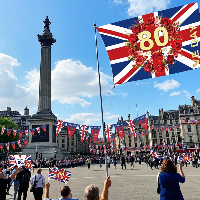 - 🚩【VE Day 80th Flag】Show your patriotism with this VE Day 80th flag.Features classic Victory in Day(VE day) imagery and colours, ideal for 80th anniversary commemorations.
