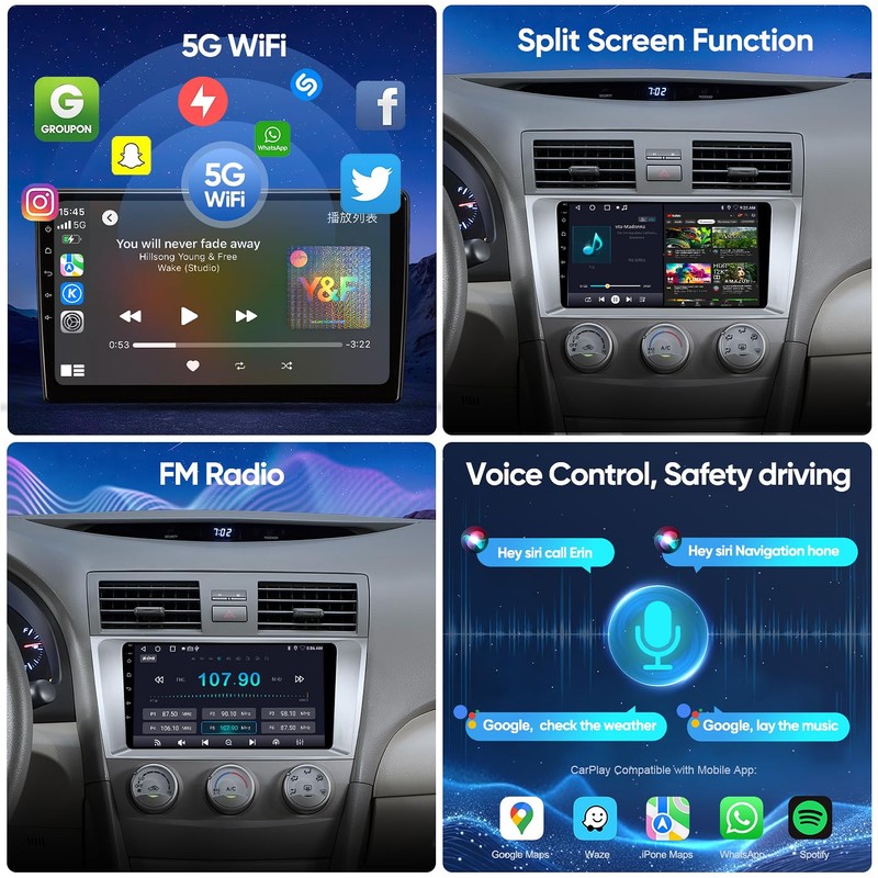 - 【Powerful Functions】Our Toyota Camry radio with 9 inch IPS Touch Screen with Android 12 system, 2GB RAM+32GB ROM provides a smooth and responsive user experience.100% standard size, no need to purchase additional accessories, just follow the installation instructions to make your car a new look.