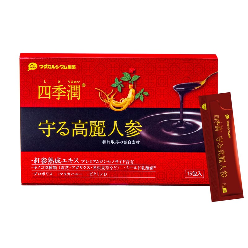 四季潤 高麗人参エキス (元気と守る力) 高麗紅参 熟成 濃縮 ペースト (5g×15包) マヌカハニー プロポリス 乳酸菌 ビタミンD キノコ [国内生産] ワダカルシウム製薬
