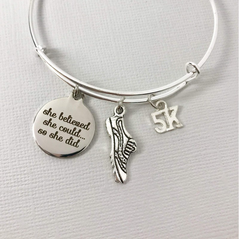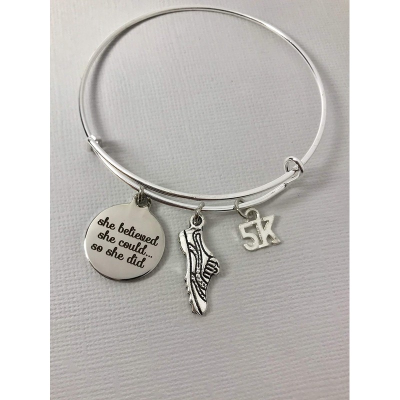 5K Running Gifts adjustable bangle charm bracelet jewelry, She believed she could so she did
