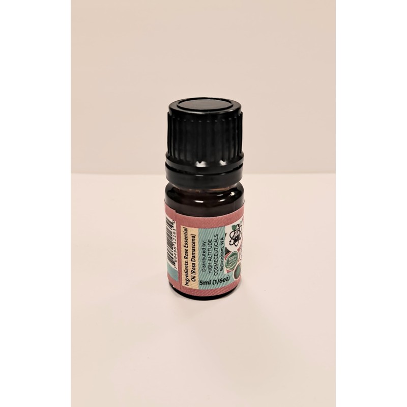 Rose Essential Oil. HIGH ALTITUDE NATURALS Rose Essential Oil is steam distilled from the fresh whole Damascus Rose flower tops (Rosa Damascena) and is composed of hundreds of natural components, with high content of petal oil (Otto). Why Damascus Roses? It is because they are the most fragrant nd are believed to be the original roses with strongest aroma and highest oil content. Rose essential oil is an excellent source of vitamins A, B3, C, D and E. It contains bioflavonoids, citric acid, flavonoids, fructose, malic acid, tannins and zinc. It is an especially good source of vitamin C. Rose Essential Oil Uses and Benefits. Rose essential oil has a long history of use in folk remedies, especially in the area of skincare. Rose oil is suitable for all skin types, but it is especially valuable for dry, sensitive or aging skins. Rose essential oil has a tonic and astringent effect on the skin surface, which makes Rose essential oil useful in diminishing the redness caused by enlarged capillaries, toning and tightening the skin. Rose essential is soothing and relaxing and is extensively used in aromatherapy, spiritual meditation, and massage. Note: This oil product is produced from the whole Rose tops and it does not solidify below room temperature. The rose oil that solidifies is produced from PETALS ONLY. If interested in petals only Rose oil (otto), please see our other listings.