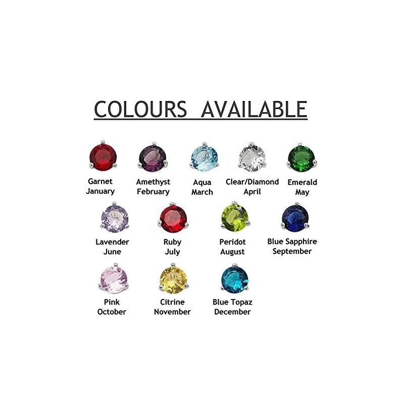 - Choose from our wide selection of Birthstone colours, including: Diamond White/Clear, Amethyst Purple, Aquamarine Blue, Onyx Black, Sapphire Blue, Zircon Blue, Citrine Yellow, Emerald Green, Garnet Red, Lavender Purple, Peridot Green, Tourmaline Pink and Ruby Red. (We use a colour description that is similar to the natural gemstone name to describe the colour of the stone only).