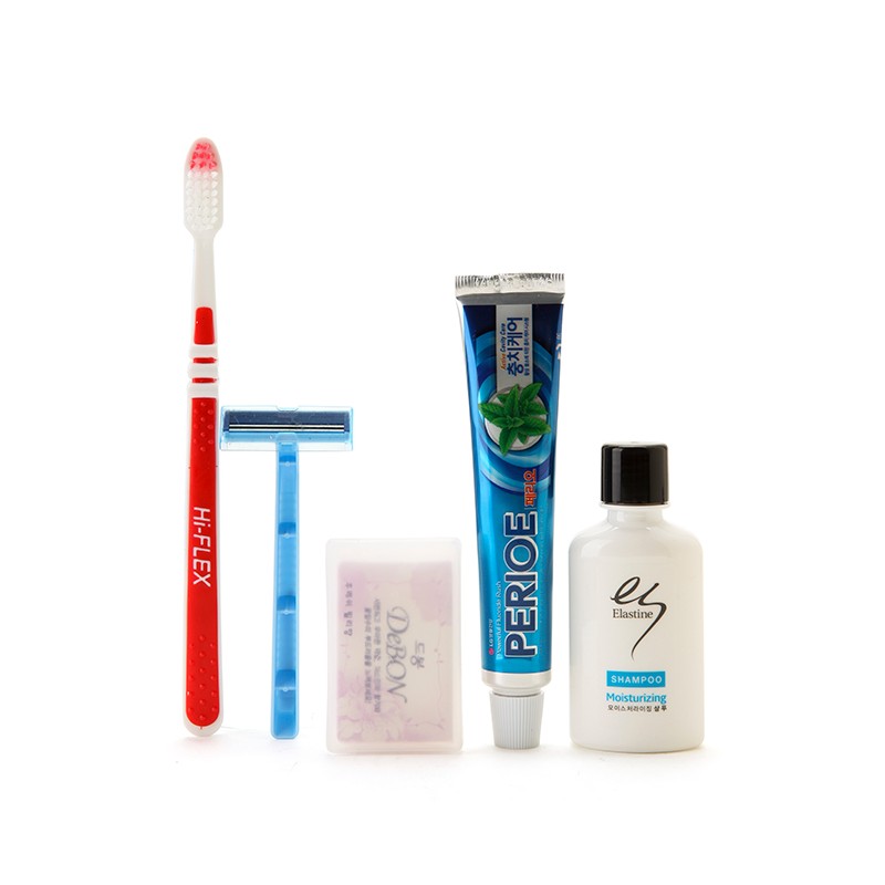 ✨ Forget scrambling for essentials! Our popular kit includes everything you need for a refreshing experience on the go, from a travel toothbrush and toothpaste to a handy disposable razor, all in one compact package.