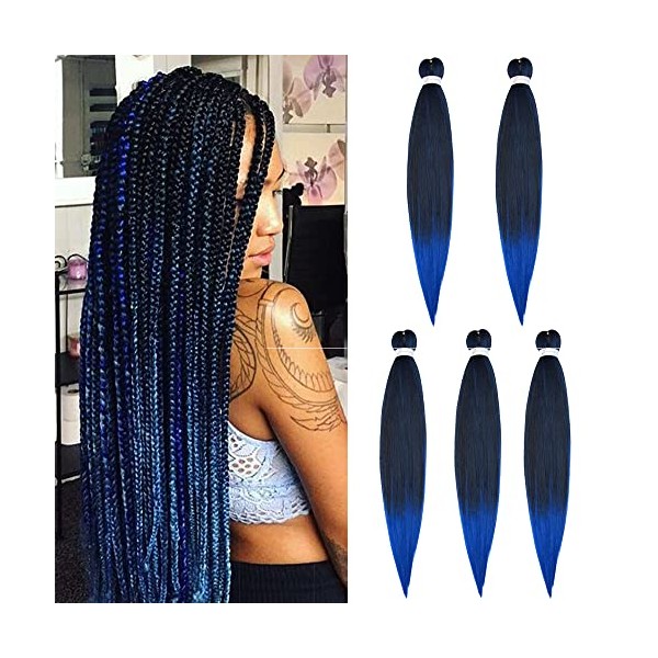 5Pack EZ Hair Braids Pre Stretched Braiding Hair Professional Hair Yaki Synthetic Hair Braids Hair Extensions Black to Dark Blue