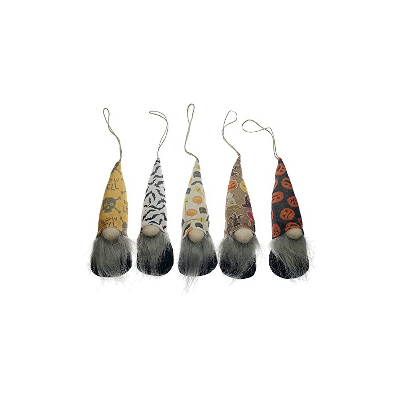 5Pack Halloween Gnome Ornaments Hanging Colorful Gnome with Hat Pumpkin Skull Bat Broom Cat Pattern for Halloween Party Favor