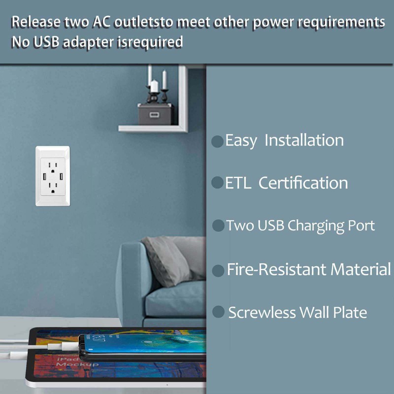 Smart & Safe ChargingCharging up to 2 USB devices at the same time with a total speed of 2.1A for both USB ports without adapters and leaves two outlets free for other power needs. Baby and Childproof Outlet. It's designed Baby Safety Electrical Outlet. |