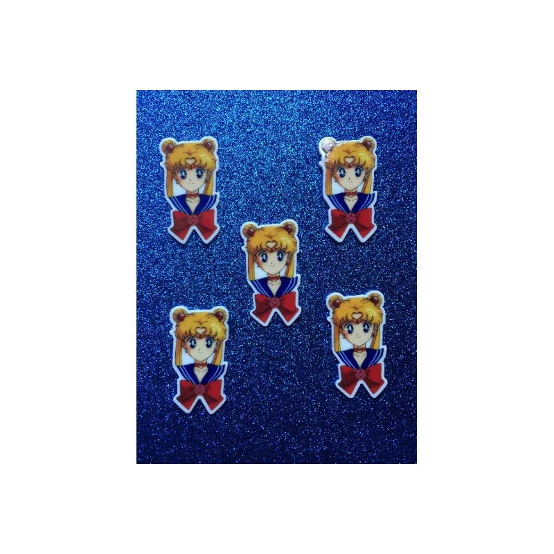 You will receive 5 Sailor Moon resin with this set.   Each one in approximately 46 x 28 millimeters in size.