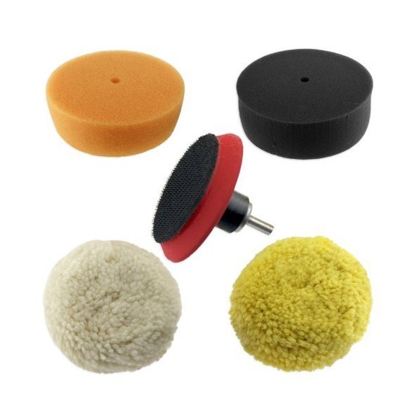 5pc Ultimate 3" Car Buffing & Polishing Pad Kit - Turn your Drill into Power Polisher - Foam & Wool Pads - Hook & Loop Backing Pad with Adapter