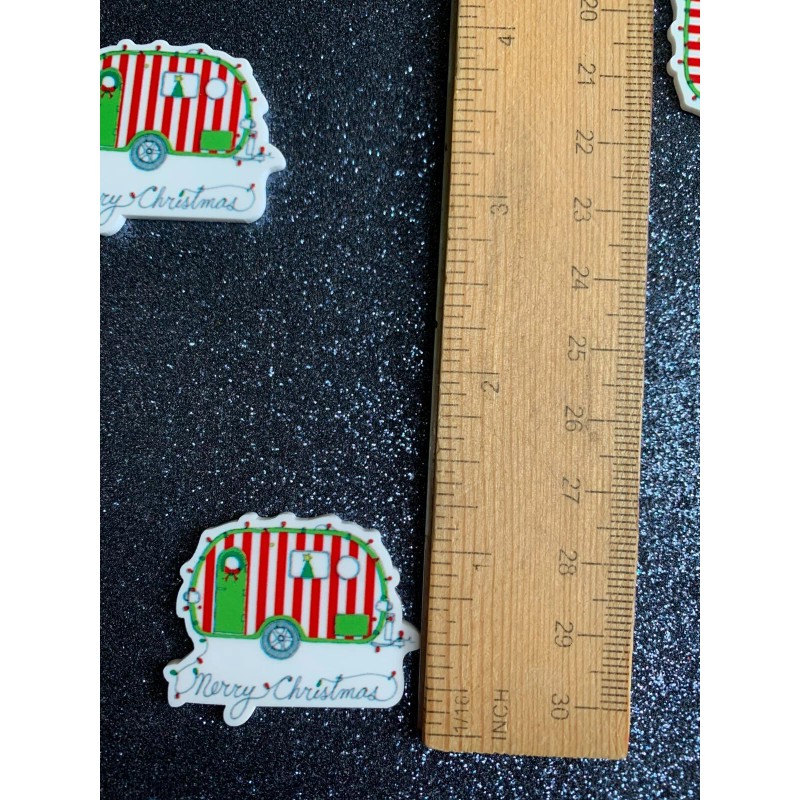5pc Vintage Camper, Merry Christmas, Resin Planar Flatback, Cabochon, Bow Center