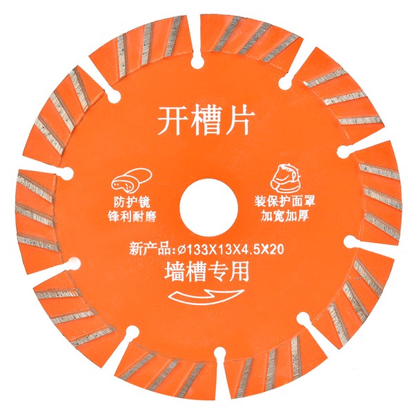 1、Suitable for cutting concrete, brick, granite, quartz stone, artificial stone, ceramic, brick wall, etc. 2、High hardness diamond blade can stably cut various materials, not easy to break. 3、The slotted blade design facilitates fast chip removal. 4、Good cutting effect, high efficiency, long service life. 5、Replacement circular saw blade for 133mm grooving machine.