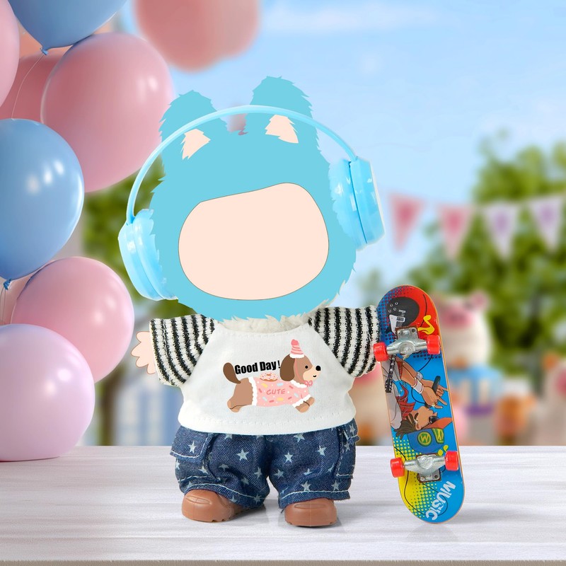Upgrade your doll's wardrobe with this stylish fashion set! The package includes: 1 trendy top with convenient Velcro back closure, 1 pair of elastic-waist pants for easy wear, 1 cool headphone accessory, 1 functional skateboard, and 1 pair of detailed shoes. Every piece is precision-tailored to perfectly fit 17cm (6-7 inch) dolls, ensuring a flawless look.