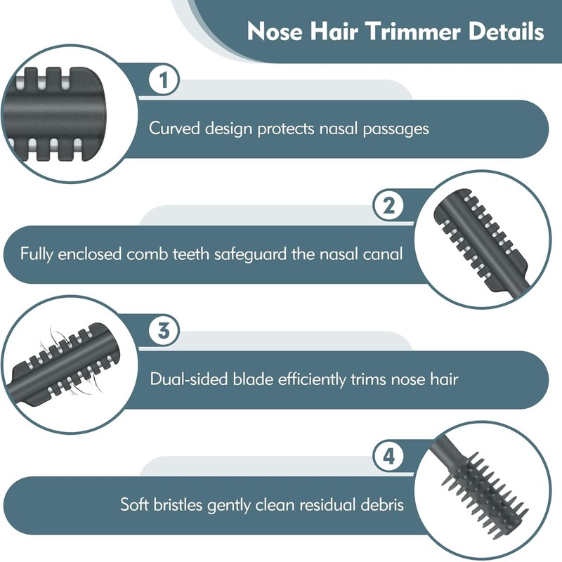 - [Perfectly Engineered] The nose hair trimmer features flawless construction. Its curved design safeguards the nasal cavity from injury, while the fully enclosed comb teeth prevent direct skin contact. The upgraded blade design delivers an exceptional user experience, and the ergonomic handle ensures comfortable, effortless grip.