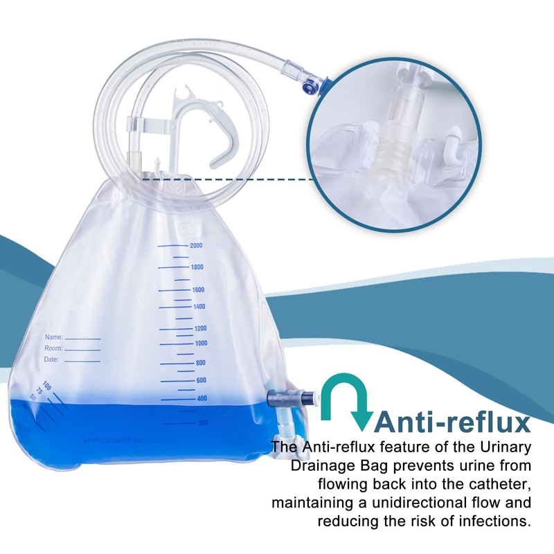 - 2000ml High-Capacity for Extended Use: With a 2000ml capacity, this drainage bag reduces the need for frequent emptying, offering convenience for prolonged use.