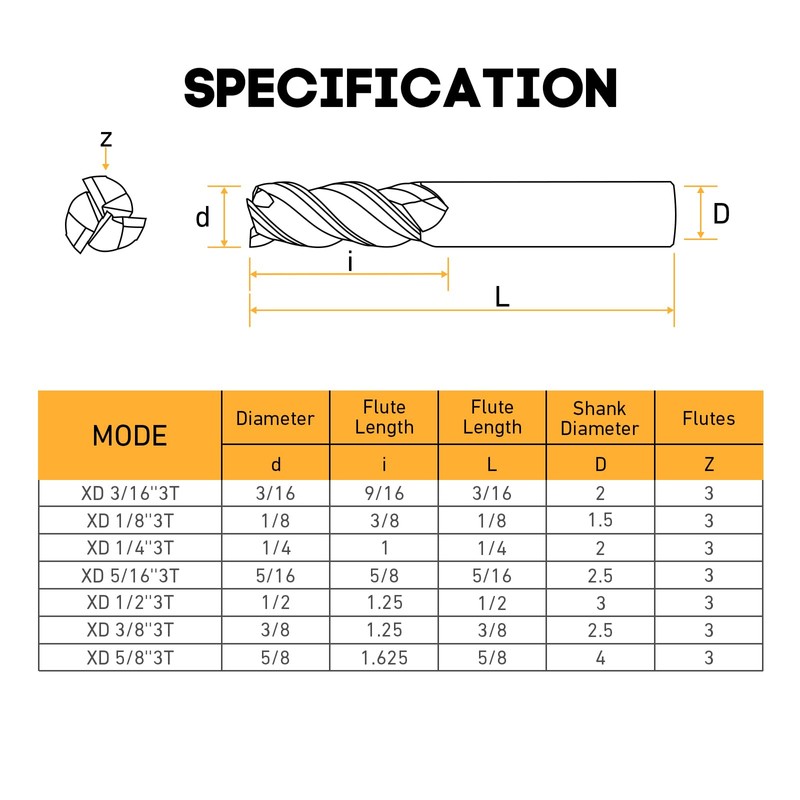 - SIZE DESCRIPTION:Carbide Square End Mill: (d) 3/16 inch Cutting Diameter, (i)9/16 inch Cutting Length, (D)3/16 inch Shank, (L)2 inch total length.Minimum product diameter to 0.2mm, even the subtle part processing of component can be easily accomplished