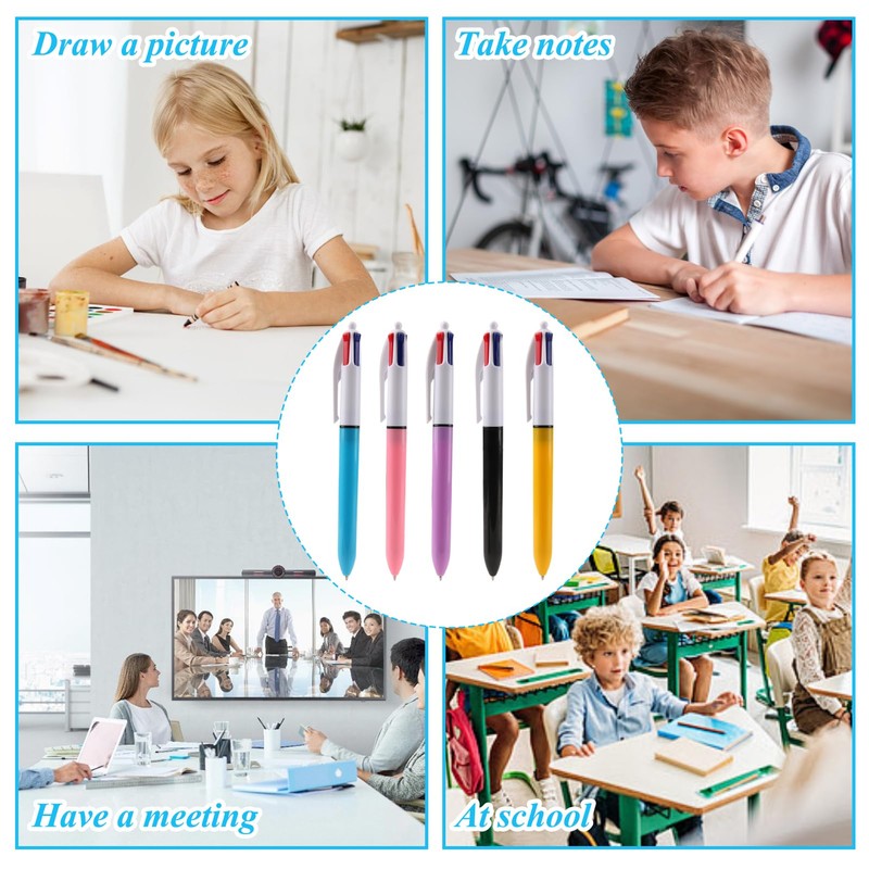 5pcs 4 Colours Ball Pens, 4-in-1 Retractable Ballpoint Pens 1.0mm Multi Coloured Portable Pencil All in One for School, Office, Students, Adults, Kids, and Party Favors (Black, Blue, Red, Green)