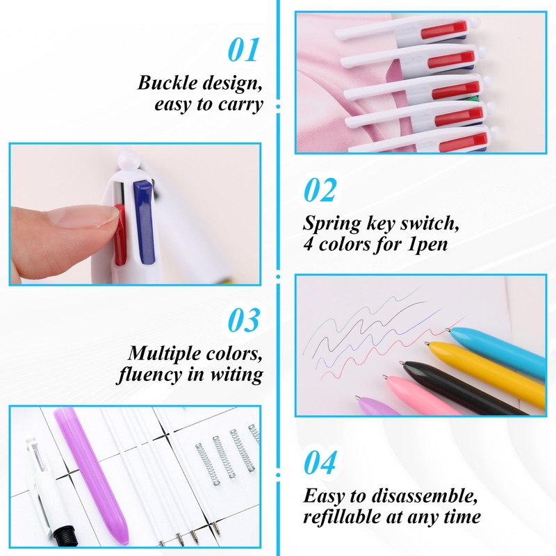- Smooth Writing Experience: Equipped with a 1.0mm medium point, this 4 colour pens with clip delivers consistent, smooth, and skip-free writing on various surfaces. The high-quality ink ensures long-lasting performance, making multicolour pens 4 in 1 ideal for daily use in school, office, or home settings.