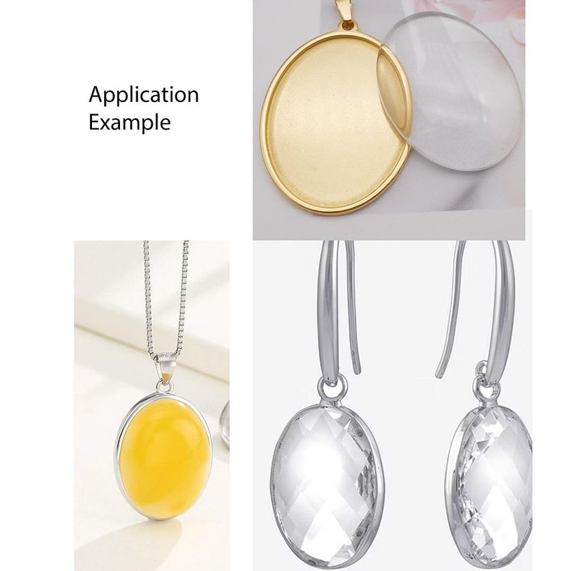 - Designed for 40mm long x 30mm wide (1.57 inch x 1.18 inch) cabochon or bead, Tray cup's Inner diameter 40mm long x 30mm wide (1.57 inch x 1.18 inch), Tray cup's outer diameter ~ 43mm x 33mm (1.7 inch x 1.3 inch), Bail ~ 9.5mm x 3.5mm (0.37 inch x 0.14 inch)