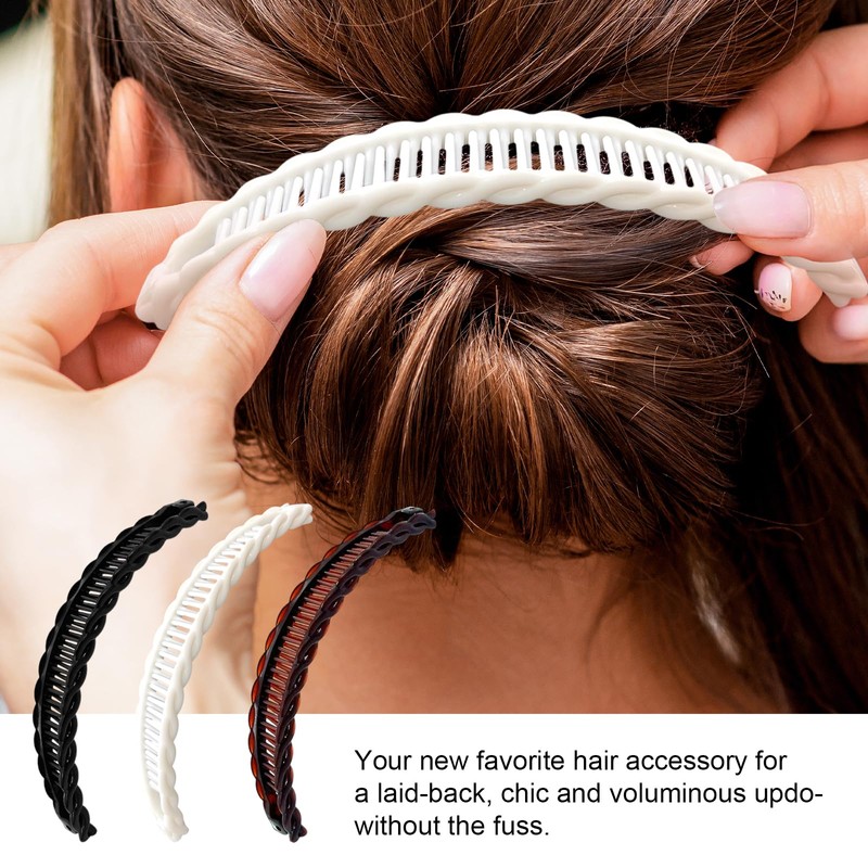 - Elegant and Stylish Design: Elevate your hairstyle with our banana hair clip set. The elegant and stylish design of these clips adds a touch of sophistication to any look. Whether you're heading to the office, a night out, or a special event, these hair combs for women will make you feel confident and put-together. The classic colors of black, brown, and white ensure that these clips will complement any outfit.
