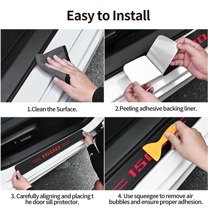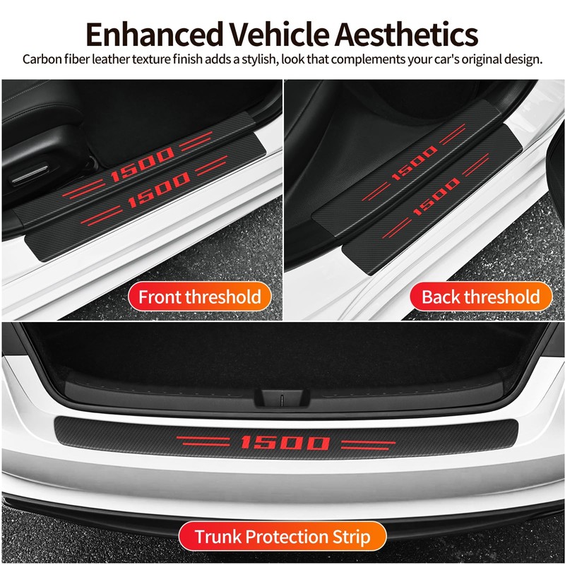 5PCS Car Door Sill Protectors for Dodge RAM 1500 Accessories, Carbon Fiber Leather Door Entry Guard Sill Protector, Threshold Stickers with Plastic Scraper (Red)
