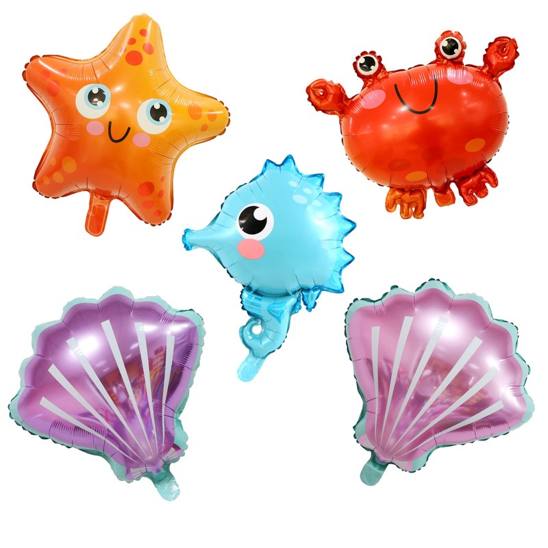 - Complete Ocean Party Set Includes 5 foil balloons (crab, starfish, seahorse + 2 glitter shells), 1 balloon stick for easy inflation, 20 adhesive dots for mess-free hanging, and 10m ribbon. Everything for instant decorating!