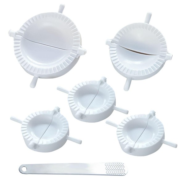 - 【Product Content】You Will Receive 5 Pieces Of Dumpling Stamping Molds, The Sizes Are 7Cm (3 Pieces), 8Cm (1 Piece) And 9Cm (1 Piece), And The Color Is White. In Addition, It Also Includes A Stainless Steel Filling Spoon With A Size Of 16*2Cm And A Silver Color, Suitable For Making Dumplings And Wontons.
