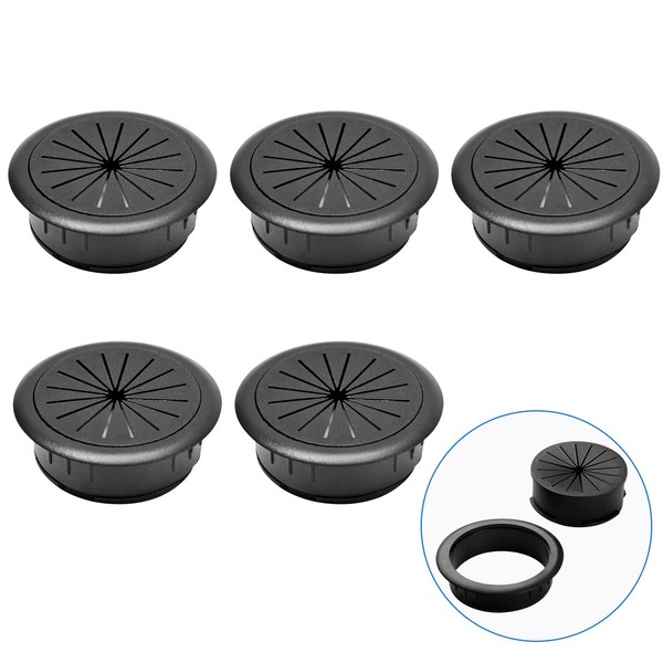 5PCS Flexible Desk Grommet,50mm/2 inch Grommet Aperture, Wire Cord Grommets Hole Cover (Black) Data Cable Storage and Sorting Tools