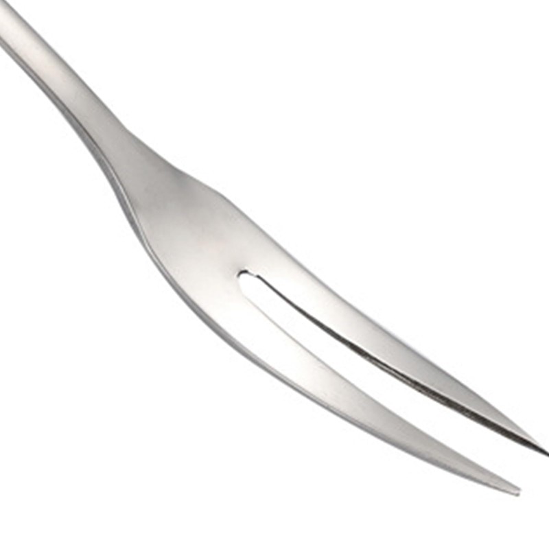 - Its streamline design provides you with good and comfortable grip, attractive and simple design with clean lines will match with your existing flatware more naturally.This can also be used as a meat fork.