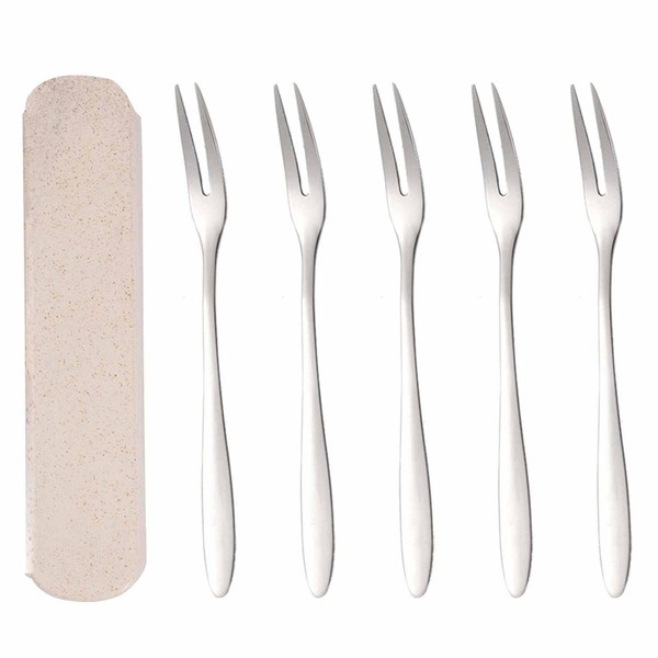 5pcs Fruit Forks Salad-304 Stainless Steel Tasting Appetizer Cocktail Forks 13.3cm with Recyclable Box