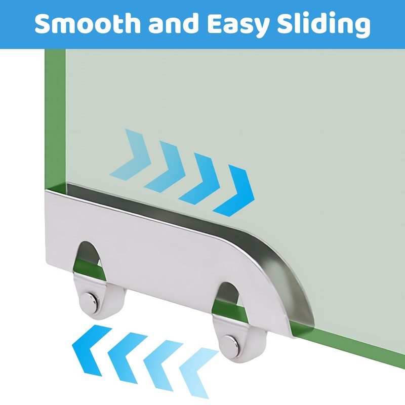 This 5-piece glass door rollers set is designed for edge-framed glass doors, including frameless shower panels. The cabinet sliding door rollers slide along the track wheel pulley smoothly and quietly. The stainless steel sliding door rollers fit securely in glass door grooves for stable operation. Well-suited for frameless glass doors and bathroom panels, the set ensures effortless movement and proper alignment without modifying the door. Compatible with glass door pulley wheels, these rollers are designed specifically for glass applications and provide a quiet sliding experience.