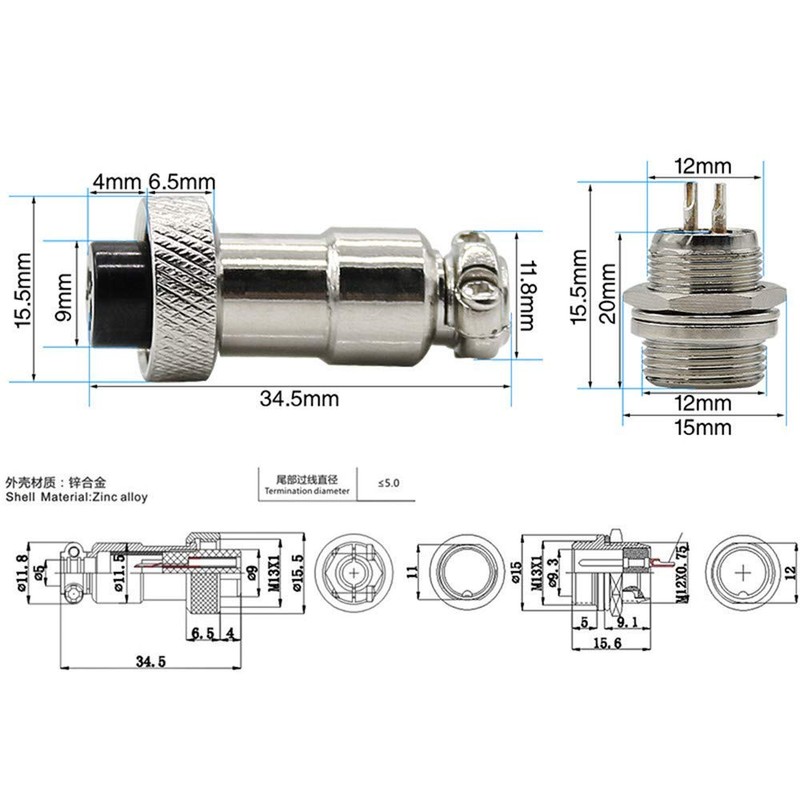 5PCS GX12 12mm Thread Aviation Connector Plug Socket 4 Pin 5A Male & Female Circular connectors