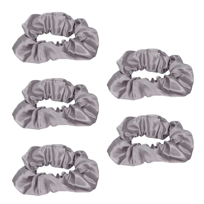 5pcs Light Up Scrunchies - Grey Satin Elastic Hair Scrunchy with Glow in The Dark - High Elasticity, Easy to Carry - Perfect for Neon Parties and Events