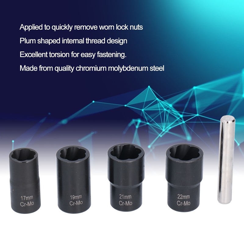 5Pcs Lug Nut Socket Set Convenient Efficient High Hardness Durable Twist Socket Set for Worn Rusty Nuts